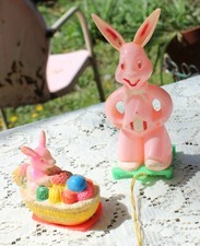 Two Vintage Mid Century Pink Easter Bunnies Celluloid & Plastic Toys