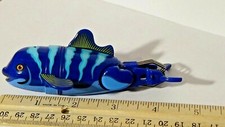 4.5" Whale Figure Blue Stripes Vintage Plastic Fish Figurine Toy Sea Creature