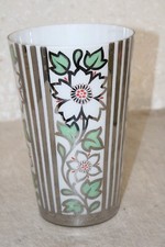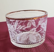 Antique Rare Gold Rim Etched Glass Ice Bucket Vintage Floral Pattern