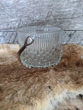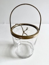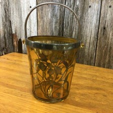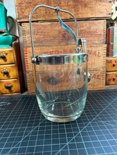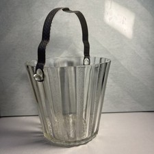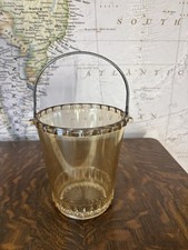 Vintage Art Deco Mid Century Small Glass Ice Bucket With hammered Chrome Handle