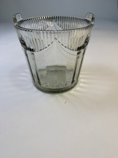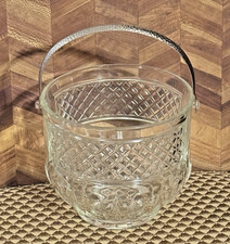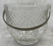 Vintage Clear Pressed Glass Small Ice Bucket w Silver plated Handle 4.25" Diam