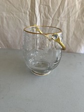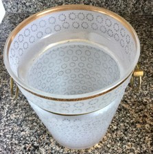 Antique/Vintage Frosted Glass Ice Bucket Gold trims brass handles with Claw Tong