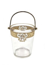 Vintage Small Glass Crystal Ice Bucket Gold Handle Vanity 4”Frosted Design Italy