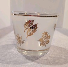 Vintage Libbey Golden Foliage Leaf Frosted Glass Ice Bowl Bucket MCM