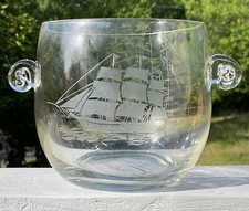 Antique - Vintage Blown Glass Champagne Bucket w/ Etched Clipper Ship & Handles