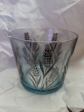 Vintage MCM Glass Ice Bucket Blue Tinted Glass With Silver Wheat Printed Design