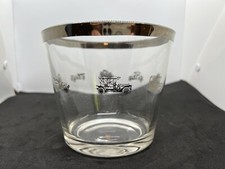 VINTAGE DORTHY THORPE MCM SILVER RIM ICE BUCKET GLASS ANTIQUE CARS