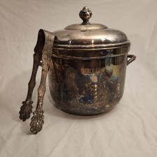 Vintage Antique Cut Glass Silver Plate Ice Bucket and Tongs