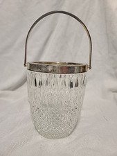 Vintage Cut Glass Ice Bucket Silver Handle Rim Heavy