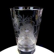 Bohemian Czech Glass Clear Floral Etched Heavy Vintage 8" Ice Bucket 1950s