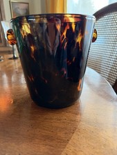 Vintage Amber Tortoiseshell Art Glass Ice Bucket Mid Century Barware
