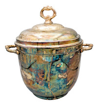 Antique Vintage Art Nouveau Gold Painted Glass and Brass Handle Ice Bucket