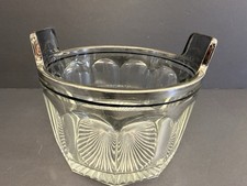 Vtg Antique Thick Glass Ice Bucket w/Silver Metal Handle, Eisenberg-Lozano Tongs