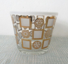 VINTAGE GLASS MID CENTURY MODERN CARNIVAL ICE BUCKET GOLD & CLEAR