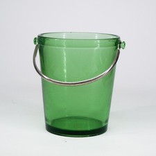 Vintage Art Deco Green Glass Ice Bucket with Chrome Swing Handle 6" high