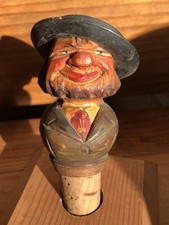 Antique Vintage Anri Hand Carved Wood Man Wine Cork Bar Bottle Stopper