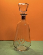 Vintage Whiskey, Wine, Liquor Decanter, Pressed Leaf Design, Stopper with Cork.
