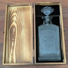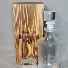 Harley Davidson 36oz Whiskey Glass Decanter w Original Wood Box(Brand New)