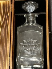 âšNew Harley Davidson Glass Decanter Whiskey 2021 Wooden Box- North Country HD
