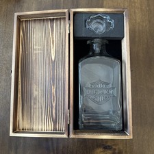 Open Box Harley Davidson 36oz Glass Whiskey Classic Decanter with Wood Box
