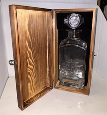 Harley Davidson Glass Whiskey Decanter in Wooden Box Collector Rare Decoration