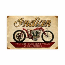 INDIAN 45 HILL CLIMBER MOTORCYCLE 18" HEAVY DUTY USA MADE METAL ADVERTISING SIGN