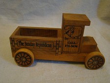 Wooden Promotional Toy Truck w/ Advertising "Sunday Republican" 111624