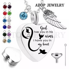 Heart Urn Necklace For Ashes Cremation Memorial Keepsake Jewelry 12 Birthstones