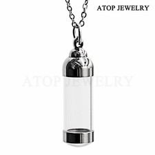 20in Stainless Steel Glass Bottle Urn Pendant Necklace Cremation Memorial Ashes