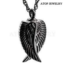 New Angel Wing Black Urn Necklace For Ashes Cremation Pendant Memorial Jewelry
