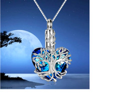 Tree of life Heart Crystal Cremation Urn Keepsake Ashes Memorial Necklace