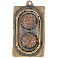 Early 1900s Style Coin Pendant Indian Head & Wheat Cent Replica Folk Art