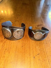 Pair Custom Made Steel Bracelets With Old US Silver Coins and Indian Head Cents