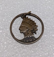 VINTAGE 1905 INDIAN HEAD PENNY LASER CUT COPPER U.S. COIN Necklace Pendant
