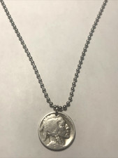 USA 5 Cents "Buffalo Nickel" Indian Head cut coin pendant with necklace