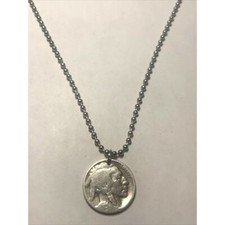 1937 INDIAN HEAD BUFFALO NICKEL 5 CENT SILVER COLOR 19" NECKLACE EBS3081S/61523