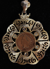 1891 INDIAN HEAD PENNY BEZEL GOLD Pendant EUC