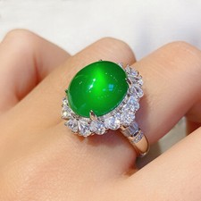New Hemisphere Natural Green Agate Topaz Gemstone Classical Women Silver Rings