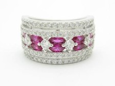 Platinum Sterling Silver Diamond Set Red Sapphire Wide Vintage Design Band Ring