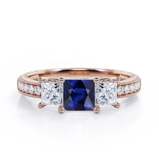 Vintage Art Décor 1.25ct Blue Sapphire Princess Cut Engagement Ring for Women