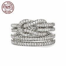 Vintage Twisted Bowknot Ring 925 Silver Platinum Micro Set Zircon Women