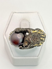 Platinum Tone .925 Vintage Sterling Silver Estate Bear Ring Size 6