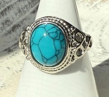 Women’s Turquoise Gemstone Vintage Style Ring Size 11 Boho Platinum Silver NEW