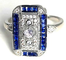 Gorgeous Art Deco Vintage Style Platinum FN Lab Created Diamond & Sapphire Ring