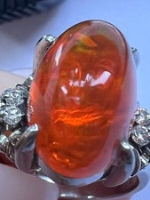Vintage Platinum Ring with Rare Mexican Fire Opal 4.83ct & Diamond
