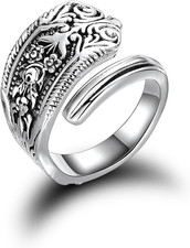 Royal Rose Spoon Rings for Women, Victorian Adjustable Vintage Antique Silver Bo
