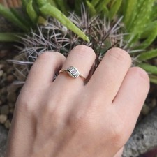 Vintage 9ct & Platinum 9K Carat Dainty 3 Diamond Geometric Dainty Ring, size 5.5