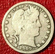 1909-O Good++ Barber Quarter Rarer Coin 712,000 Minted in New Orleans