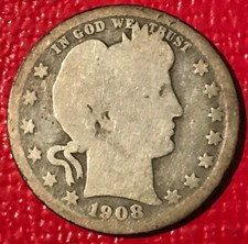 1908-s Barber Quarter, Better Date, Better Condition, Free Shipping