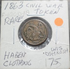 1863 CIVIL WAR TOKEN HABEN CLOTHING OSHKOSH WISCONSIN | RARE